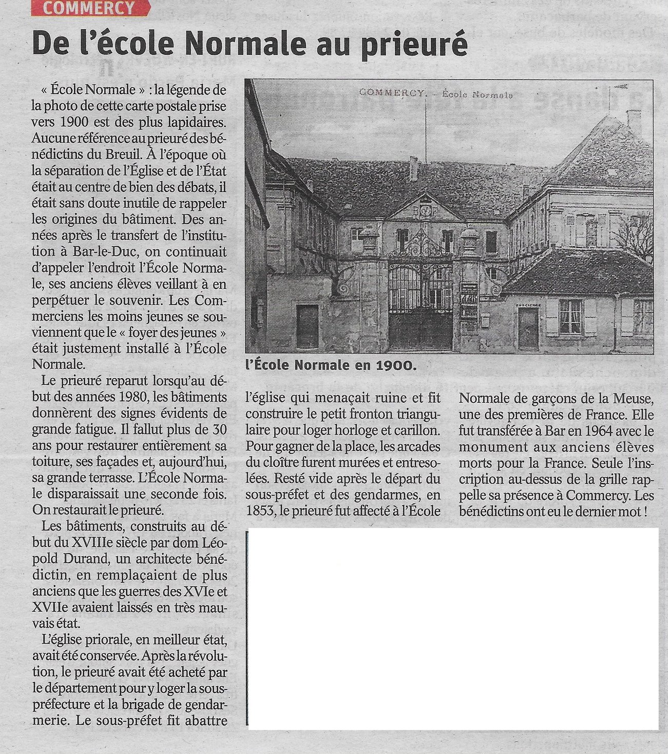 - - Installée en septembre 1854 dans les bâtiments du prieuré du faubourg de Breuil à Commercy, cette école forma les instituteurs et enseignants du département de la Meuse jusqu'à son transfert à Bar-le-Duc au lieu dit Pilvitheuil, en janvier 1963.
