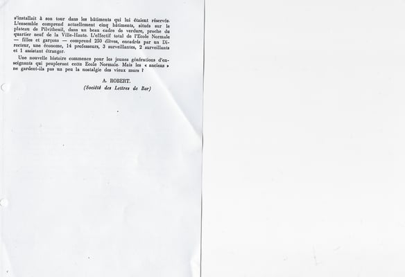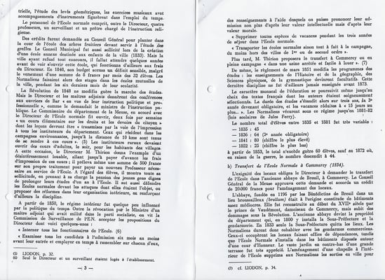 Ces exercices sont complétés, à la grande satisfaction des élèves, par des conférences extra-universitaires faites par diverses personnalités : officiers, archiviste départemental, etc. et par des excursions artistiques ou scientifiques et agricoles, dirigée par le professeur de sciences chargées de l'enseignement du dessin, et par le professeur départemental d'agriculture. On ne saurait trop remercier le Conseil général d'avoir bien voulu, par une dotation spéciale, permettre l'organisation de ces excursions qui permettent aux futurs instituteurs meusiens de mieux connaître notre belle Lorraine et d'apprécier sur place ses richesses artistiques ou industrielles. » [...]