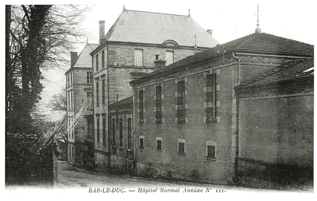 En août 1914 les locaux de l'École normale et une partie du mobilier sont remis à l'Union des Femmes de France pour y installer un hôpital, l'hôpital auxiliaire numéro 111. L'UFF est l'une des sociétés Croix-Rouge qui existent alors en France. Dans son rapport au Conseil général, l'inspecteur d'Académie espère que le comité de l'Union des femmes de France de Bar-le-Duc contribuera à la remise en état des bâtiments et du mobilier quand l'École se réinstallera dans ses locaux.