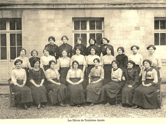 « Depuis la guerre, les normaliennes ont vivement senti la nécessité de faire effort pour se préparer à remplir convenablement leur tâche d'institutrices. La plupart des élèves de troisième année ont été appelées à suppléer des instituteurs absents. Elles envoient régulièrement des devoirs à leurs anciennes maîtresses qui les aident de leurs conseils dans le pénible apprentissage de leur métier. Ces conseils, par correspondance, remplacent mal la culture générale et professionnelle de la 3e année qui n'a pu être assurée et dont nous sentons actuellement toute l'importance. »