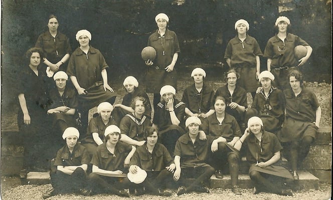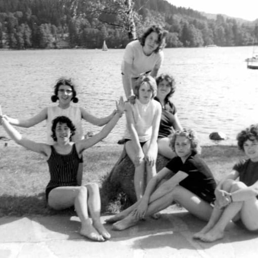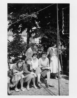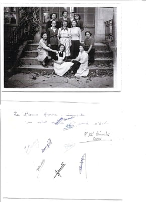 photo 2 : juin 1956 assise de G à D : Jeannine Fouché-Husson, Gilberte Marchal-Bertaux, Françoise JACOT- Cirrade, Melle Jacqueline DUBOIS ; debout Nicole Philbert-Hauvy, Jeanne Poncelet-Bouché.