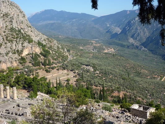Jour 5. Ouvrir l’œil à Olympie et assister à l’éclosion de « l’aurore aux doigts de rose » donne un éclairage sur le culte des Grecs à l’égard de l’aube. Fugaces moments de plénitude mais très appréciés sur la terrasse de notre hôtel où l’on se retrouve pour le petit déjeuner avant la suite de notre périple. Ce jour va nous transporter à Delphes.